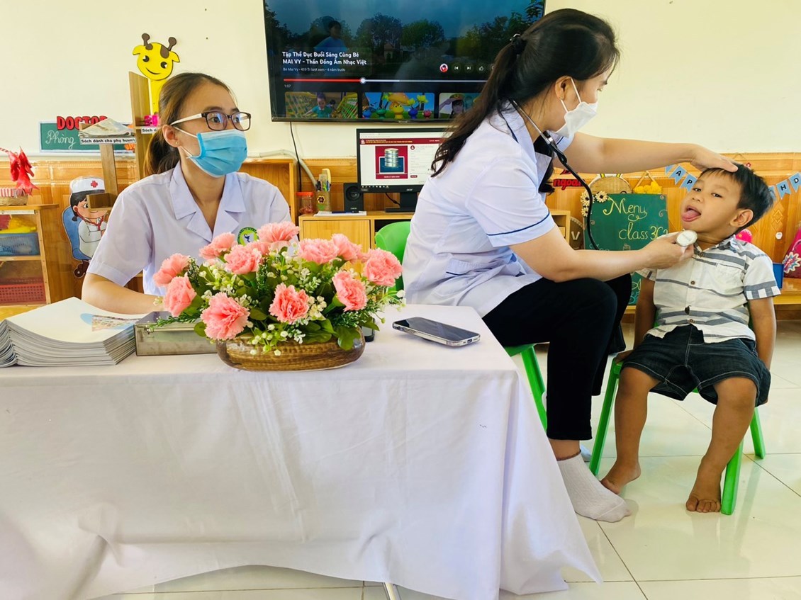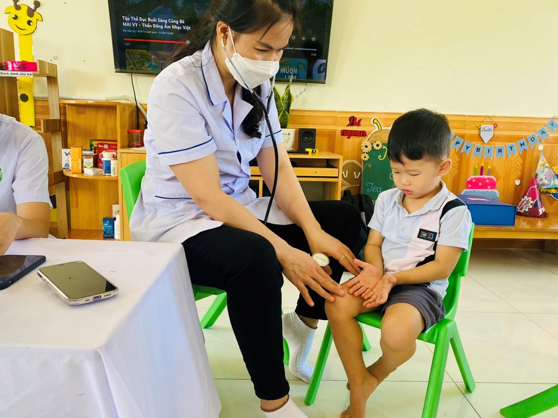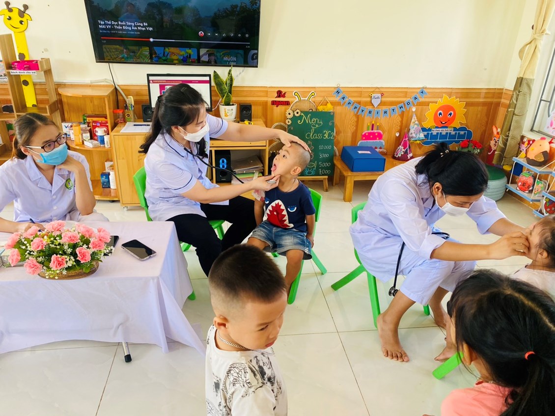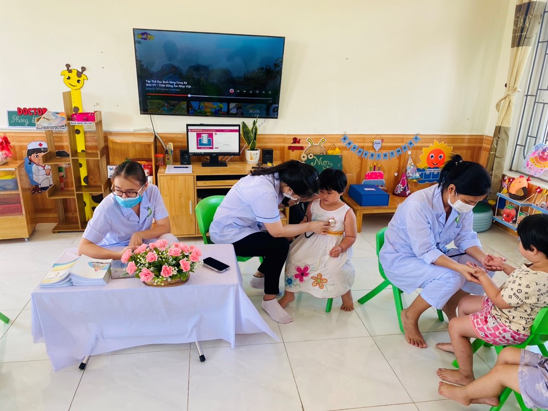 Khám sức khoẻ định kỳ cho trẻ là việc làm hết sức thiết thực và ý nghĩa thông qua việc khám sức khỏe định kỳ cho trẻ đã góp phần không nhỏ vào việc nâng cao nhận thức cho phụ huynh về ý thức phòng chống một số bệnh thường gặp ở lứa tuổi mầm non và cũng qua hoạt động này đã đem lại sự phấn khởi, tin tưởng trong các bậc phụ huynh về một môi trường giáo dục an toàn và thân thiện. Sau một thời gian làm việc nhiệt tình và trách nhiệm cao, 100% trẻ đã được khám sức khoẻ định kỳ.