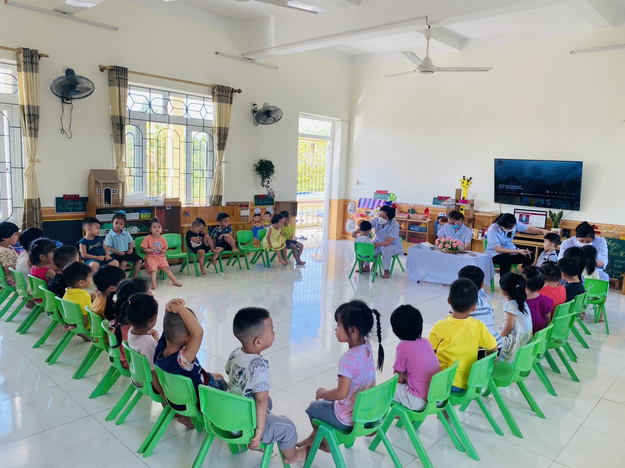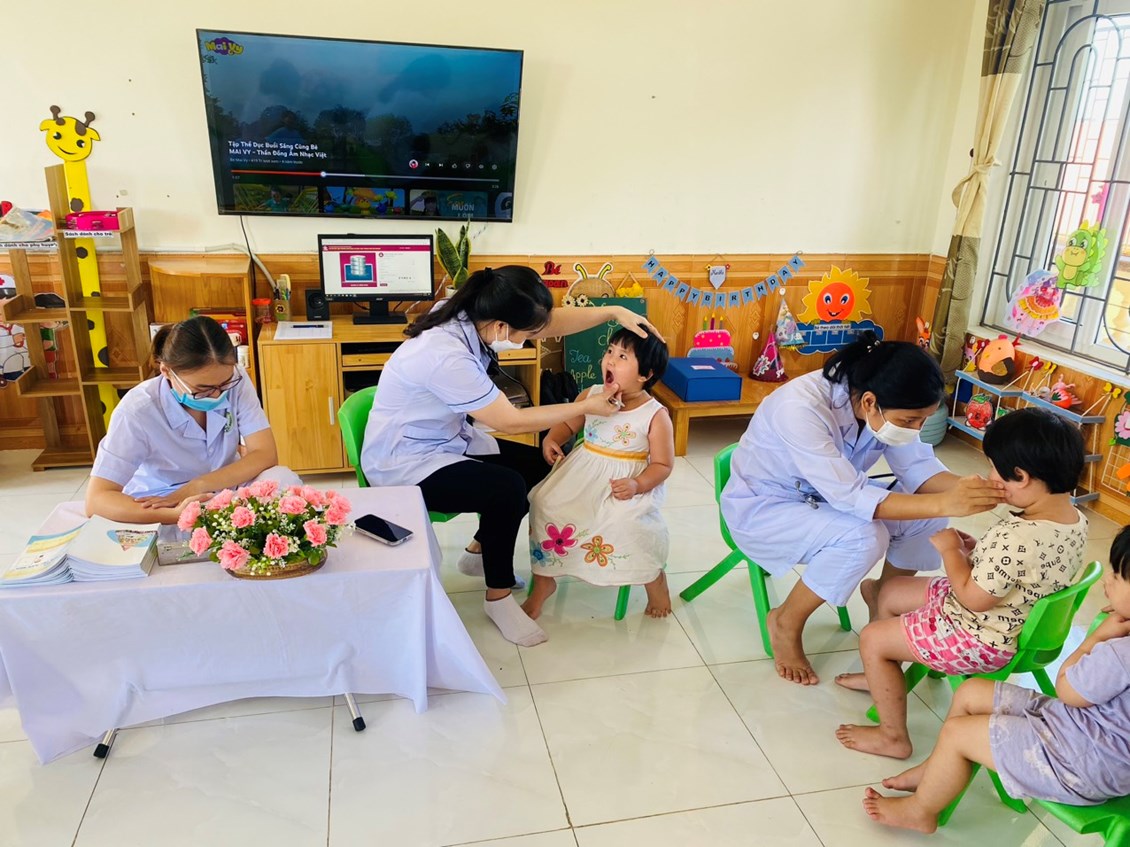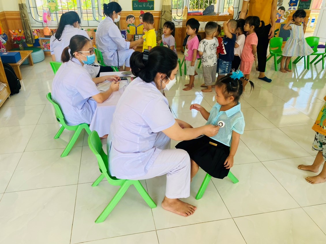 Khám sức khoẻ định kỳ cho trẻ là việc làm hết sức thiết thực và ý nghĩa thông qua việc khám sức khỏe định kỳ cho trẻ đã góp phần không nhỏ vào việc nâng cao nhận thức cho phụ huynh về ý thức phòng chống một số bệnh thường gặp ở lứa tuổi mầm non và cũng qua hoạt động này đã đem lại sự phấn khởi, tin tưởng trong các bậc phụ huynh về một môi trường giáo dục an toàn và thân thiện. Sau một thời gian làm việc nhiệt tình và trách nhiệm cao, 100% trẻ đã được khám sức khoẻ định kỳ.