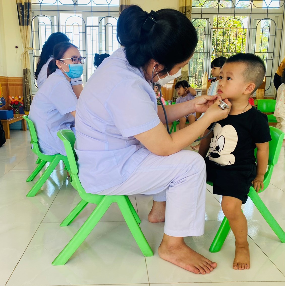 Một số hình ảnh minh họa trong buổi khám sức khỏe đầu năm cho trẻ tại lớp 3 Tuổi C2 trường Mầm non Tân Tiến.