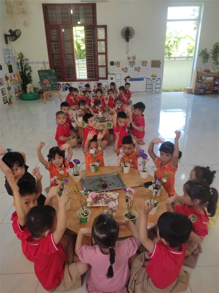 Dưới đây là những hình ảnh của buổi cắm hoa của các con:
