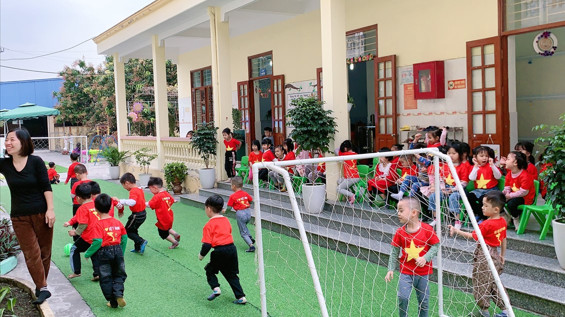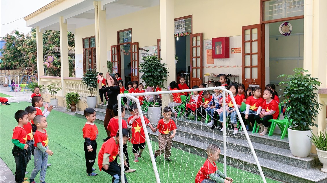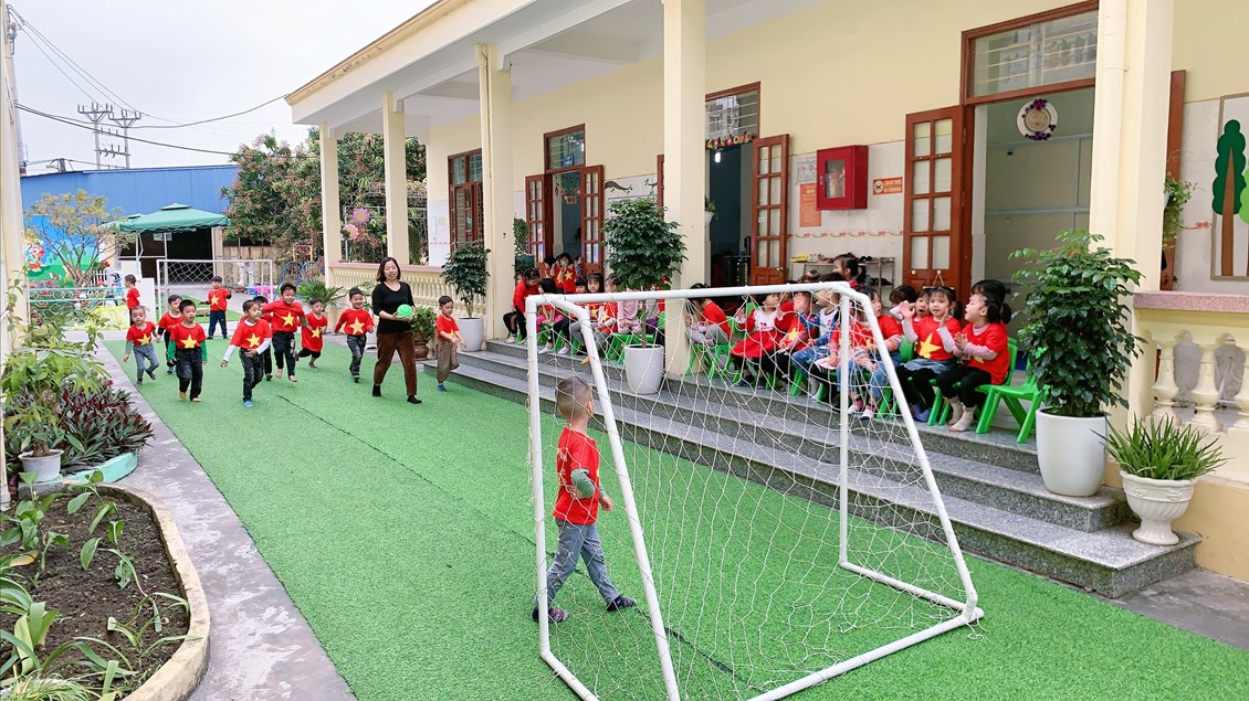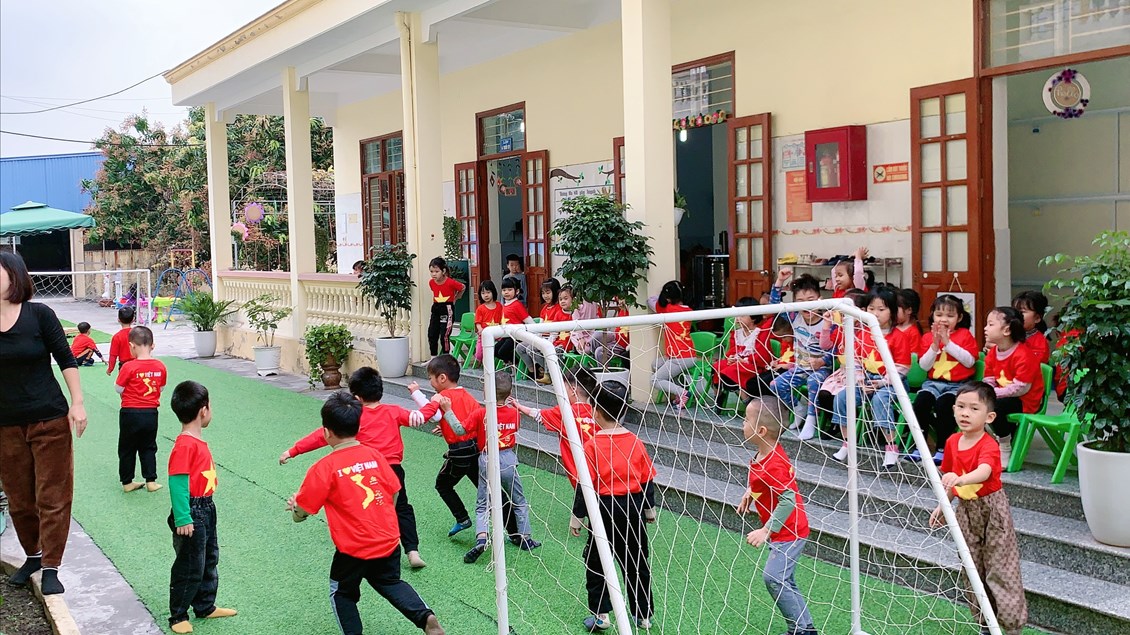 Sau đây là một số hình ảnh chơi bóng đá của các bé 4 tuổi B2