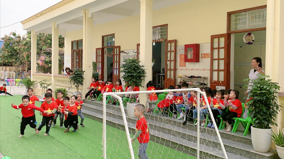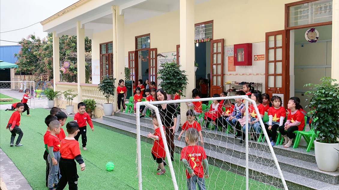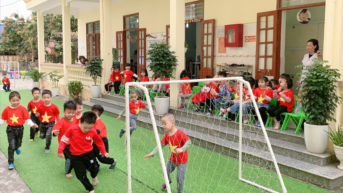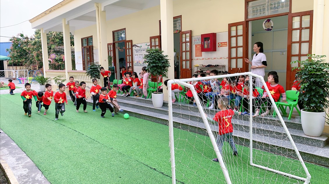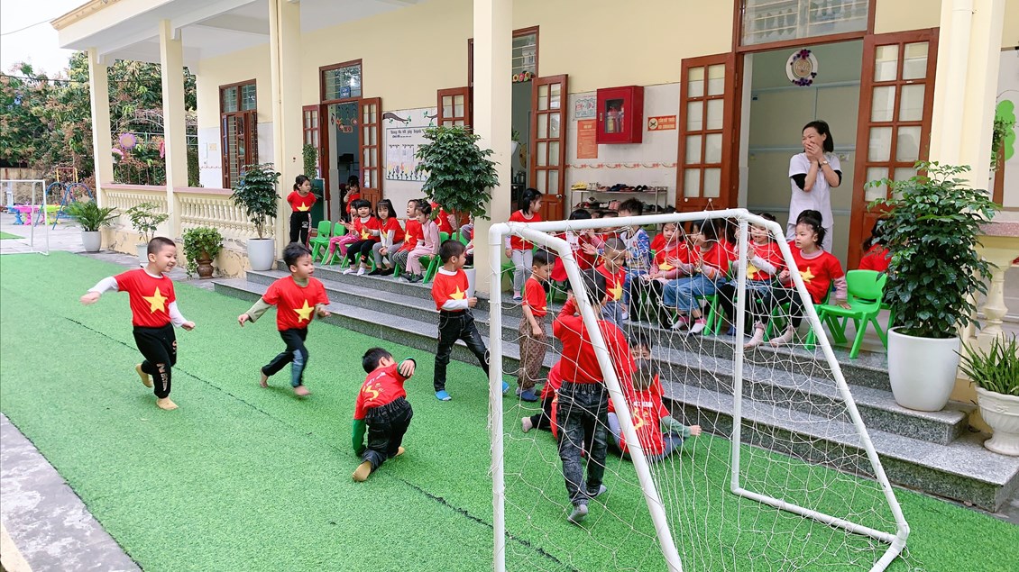 Sau đây là một số hình ảnh chơi bóng đá của các bé 4 tuổi B2