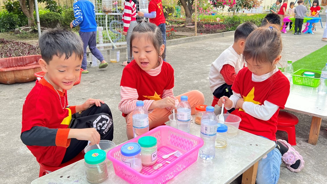 Hoạt động tại khu chơi khám phá là trò chơi mang đến cơ hội cho trẻ sử dụng các giác quan để khám phá thế giới tự nhiên, giúp trẻ cảm thấy thoải mái, vui vẻ và thích thú.