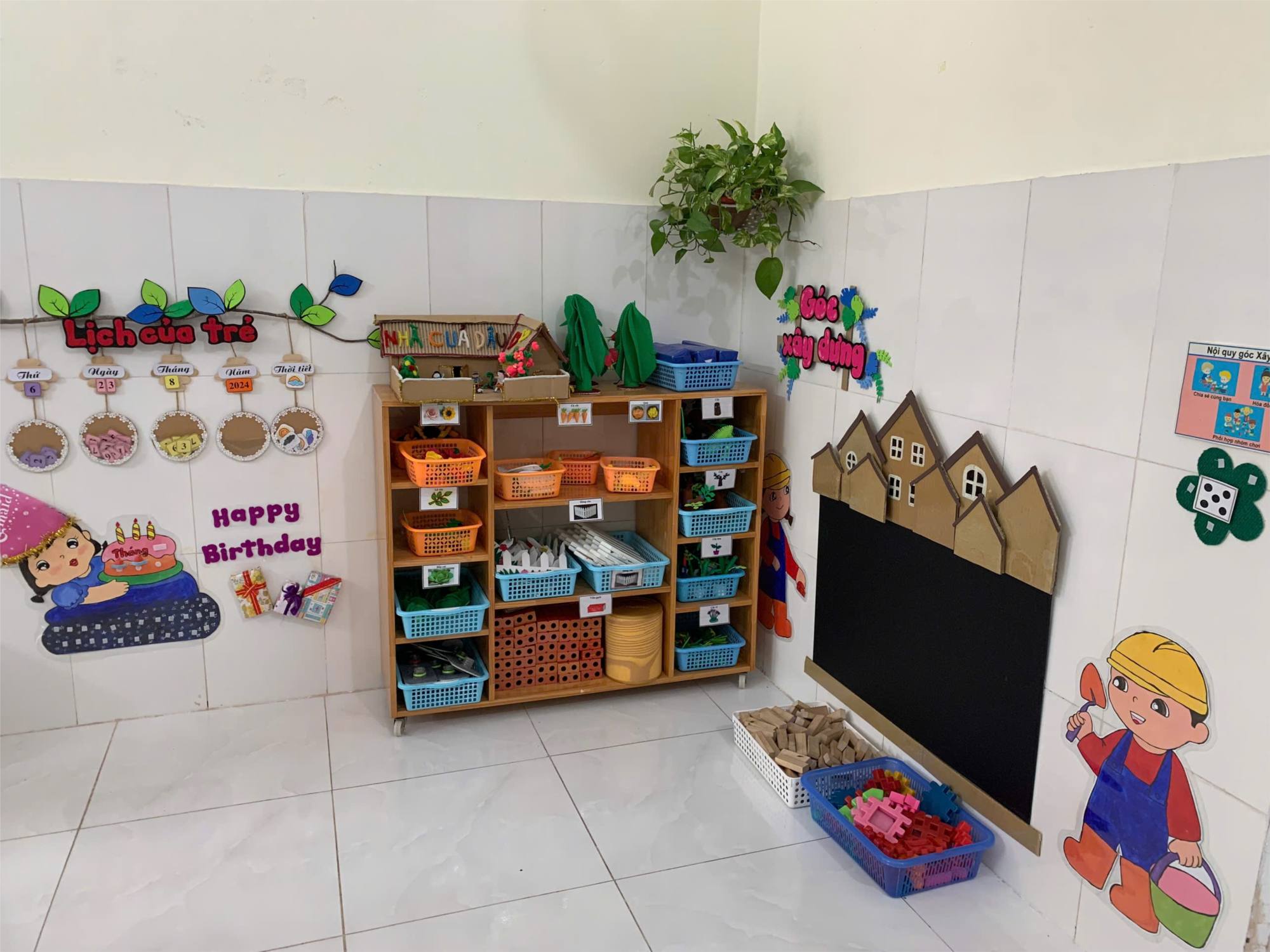 Cô giáo đã trang trí bên ngoài, bên trong lớp học, tạo không gian học tập thoải mái và an toàn nhất cho trẻ khi tới trường. Lớp trang trí theo hướng mở tạo môi trường lấy trẻ làm trung tâm với sự sáng tạo riêng, các góc trong lớp không chỉ khơi dậy được tư duy sáng tạo của trẻ mà nó còn được sử dụng như một hình thức để trang trí lớp học thật sinh động, từ đó sẽ tạo được cho trẻ sự hứng thú, tìm tòi và khám phá.