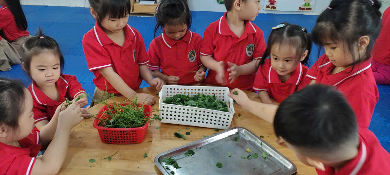 Những bàn tay nhỏ xinh, những ánh mắt say sưa, những nụ cười hồn nhiên – tất cả đã tạo nên một buổi sáng thật đáng nhớ trong hoạt động “Tuốt rau ngót” của các bé lớp 4 tuổi B1. Mỗi chiếc lá rau được tuốt không chỉ là sản phẩm của đôi bàn tay khéo léo, mà còn là kết quả của sự rèn luyện kỹ năng, tinh thần tự lập và niềm vui khi được trải nghiệm như người lớn. Mời bố mẹ cùng xem lại những hình ảnh của các con trong buổi trải nghiệm nhé!