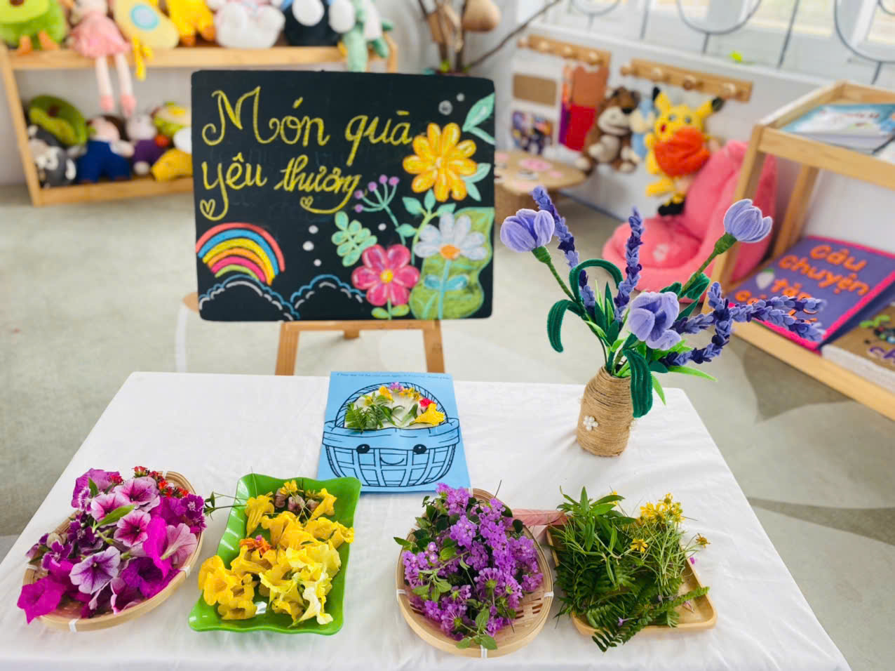 Để thể hiện tình yêu thương với Bà và Mẹ, hôm nay các bạn nhỏ Lớp Trẻ 1 Trường mầm non Tân Tến rất vui khi được tự tay trang trí giỏ hoa để tặng mẹ . Nhờ đôi bàn tay nhỏ nhắn xinh yêu các bạn nhỏ đã hoàn thiện giỏ hoa rất dễ thương tặng Mẹ🥰