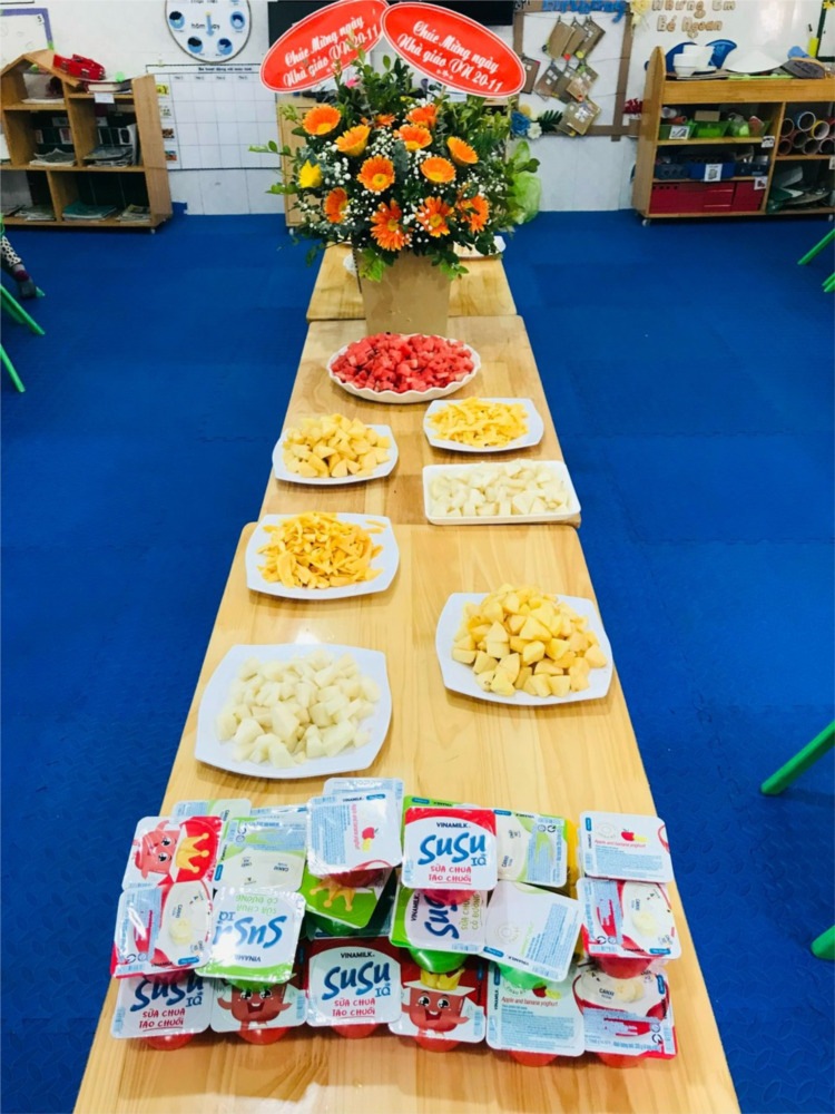 Hoạt động trải nghiệm bé làm hoa quả dầm sữa chua của cô và trò lớp 4 Tuổi B4 đã thành công tốt đẹp. Niềm vui hiện rõ trên mỗi gương mặt, cảm xúc tận hưởng món ăn ngon biểu hiện trong từng động tác của các bé yêu…