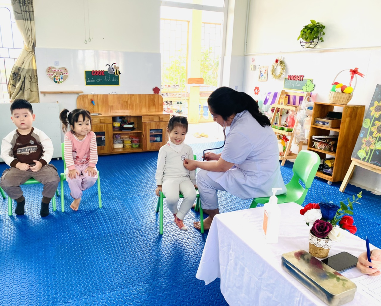 Khám sức khoẻ định kỳ cho trẻ là việc làm hết sức thiết thực và ý nghĩa thông qua việc khám sức khỏe định kỳ cho trẻ đã góp phần không nhỏ vào việc nâng cao nhận thức cho phụ huynh về ý thức phòng chống một số bệnh thường gặp ở lứa tuổi mầm non và cũng qua hoạt động này đã đem lại sự phấn khởi, tin tưởng trong các bậc phụ huynh về một môi trường giáo dục an toàn và thân thiện. Sau một thời gian làm việc nhiệt tình và trách nhiệm cao, 100% trẻ lớp 3 tuổi C2 trường mầm non Tân Tiến đã được khám sức khoẻ định kỳ cuối năm.