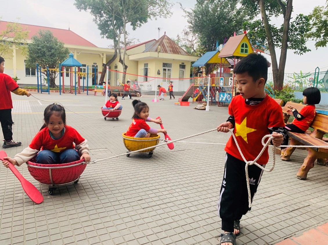 * Chơi ngoài trời: Xen kẽ giữa động và tĩnh cô giáo đã tổ chức linh hoạt các hoạt động để đảm bảo phù hợp với sự nhận thức và phát triển của bé. Khi chơi, bé được sàng lọc thông tin, tổng hợp ý kiến từ những kinh nghiệm đầu tiên, khám phá và thử nghiệm với môi trường. Vui chơi mang đến cho trẻ những cơ hội để làm giàu kiến thức, học hỏi và thực hành những kĩ năng mới.