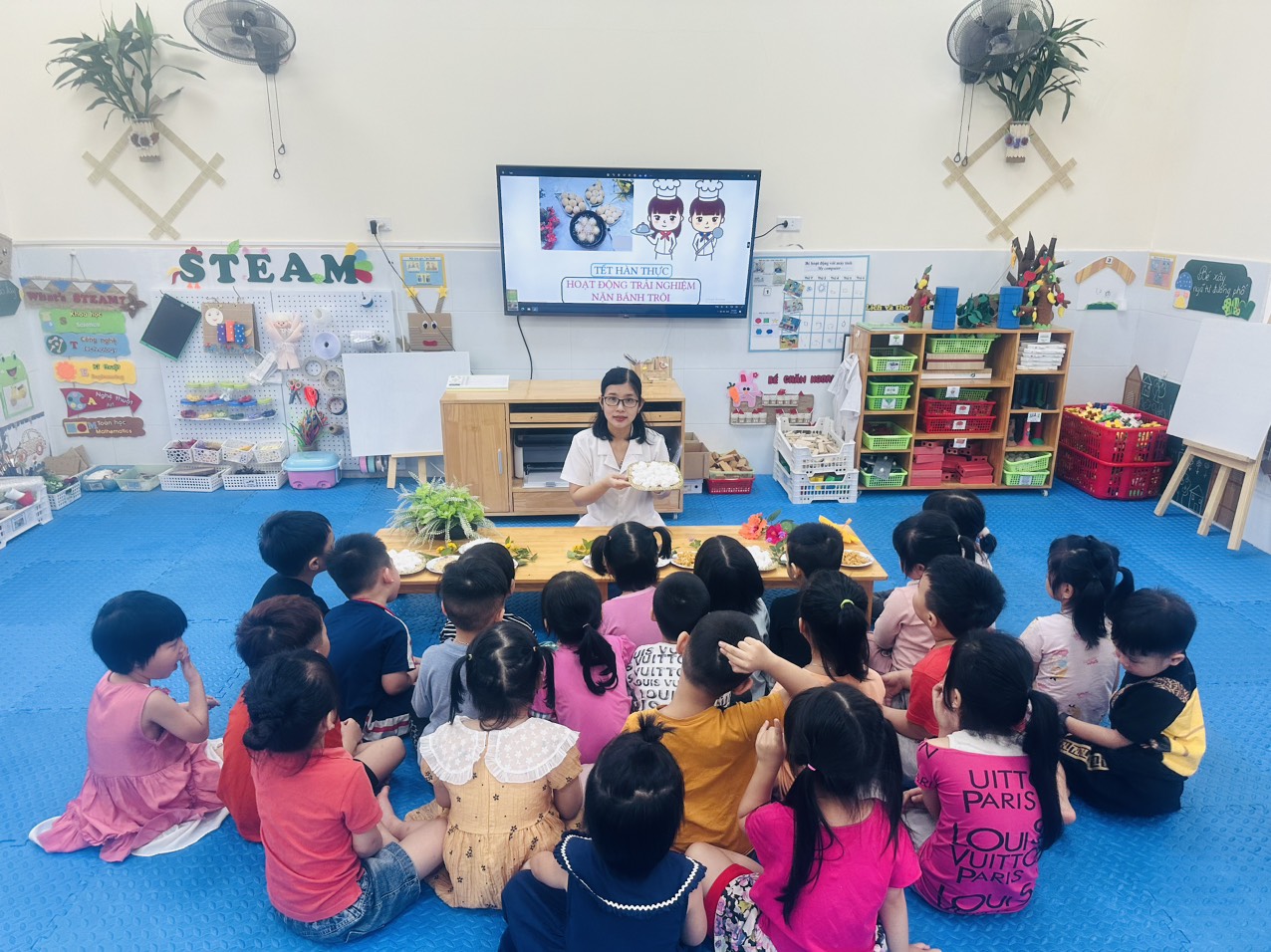 Với mục đích giáo dục cho trẻ biết được ý nghĩa của Tết Hàn Thực cũng như mang lại niềm vui, hứng khởi cho các con, giáo viên các lớp của trường mầm non Tân Tiến đã tổ chức cho các bé buổi trải nghiệm làm bánh trôi tại lớp. Hoạt động này không những nhận được sự thích thú của trẻ nhỏ mà cả sự ủng hộ, tán thành của rất nhiều cha mẹ phụ huynh học sinh. Ở mỗi lớp cô giáo đã kể cho các con nghe về sự tích, ý nghĩa của ngày Tết Hàn Thực.