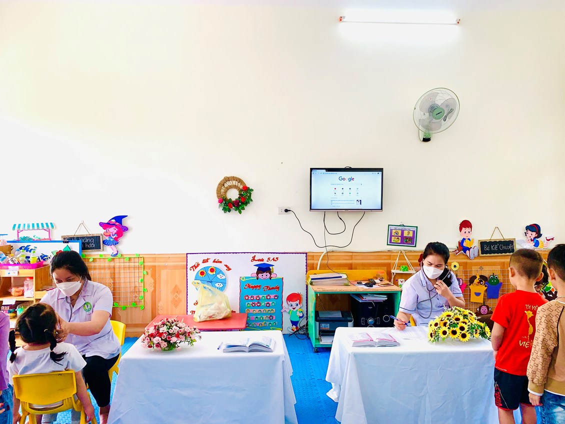 Thứ 6, ngày 14 tháng 10 năm 2022 trường Mầm Non Tân Tiến phối kết hợp với trạm y tế xã khám sức khỏe định kì lần 1 cho các bé với những nội dung sau: Cân nặng, chiều cao, khám tai, mắt, mũi, họng, kiểm tra tim và một số bệnh liên quan đến đường hô hấp, da liễu…