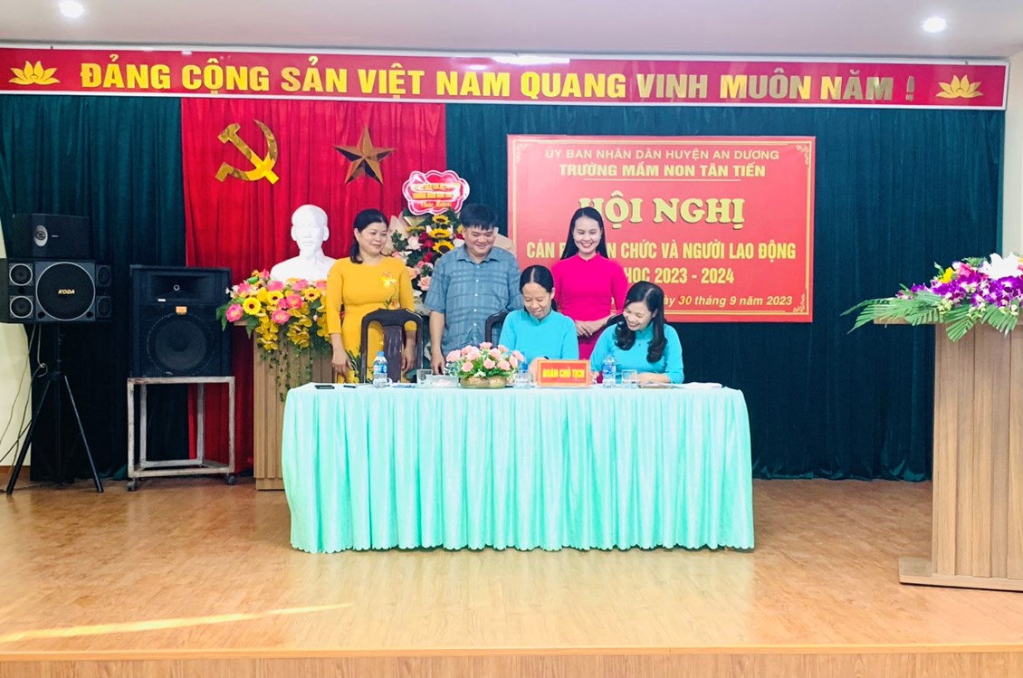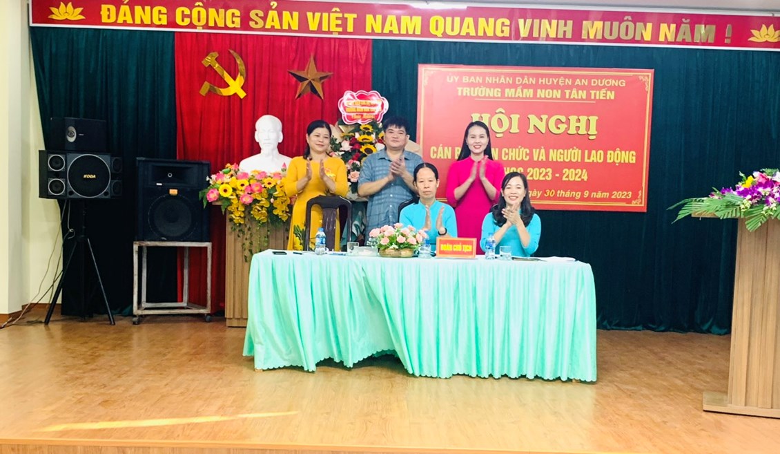 Chiều ngày 30 tháng 9 năm 2023 Trường Mầm non Tân Tiến long trọng tổ chức Hội nghị cám bộ, viên chức và người lao động năm học 2023 - 2024. Về dự và chỉ đạo hội nghị có:
