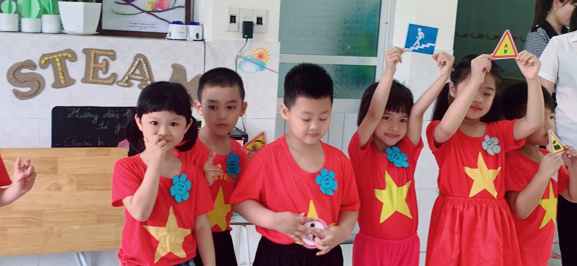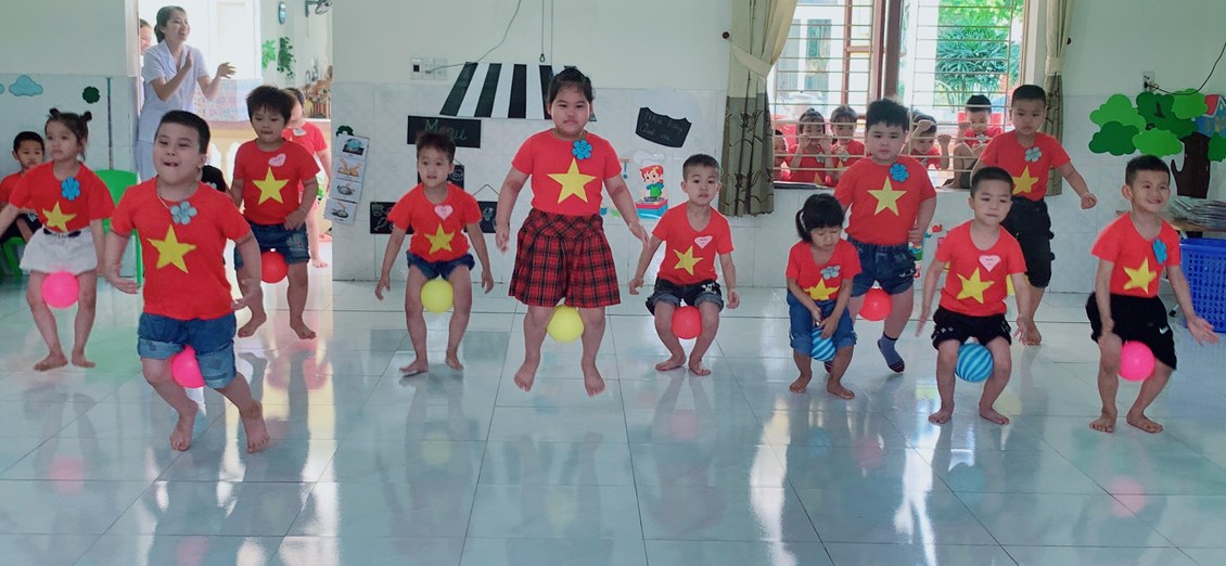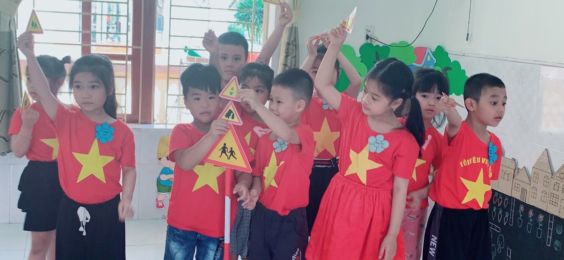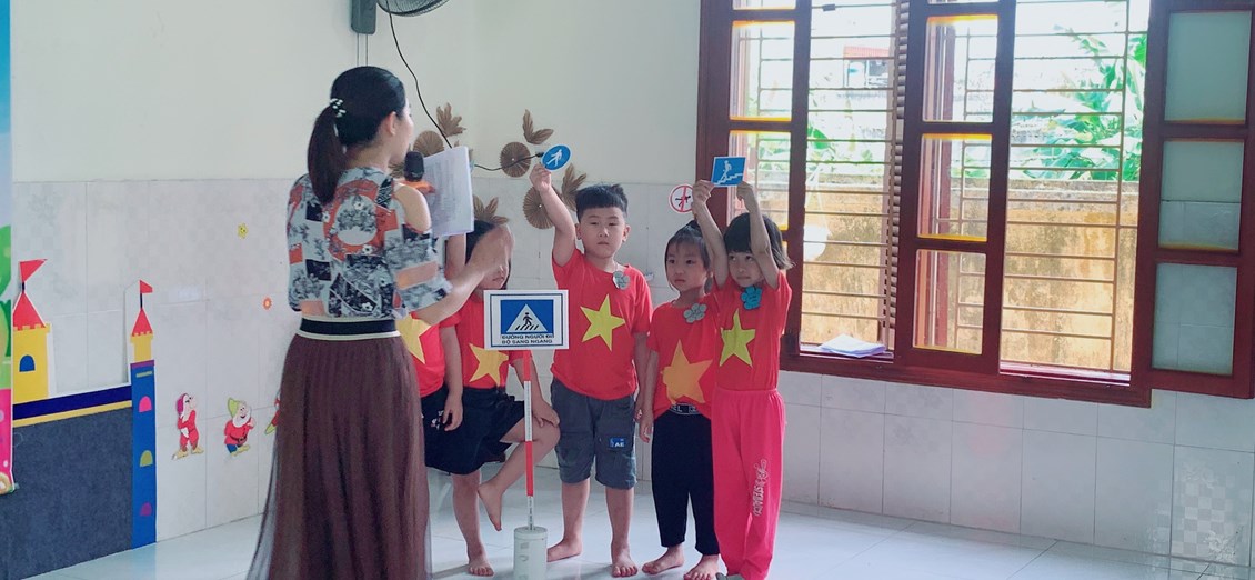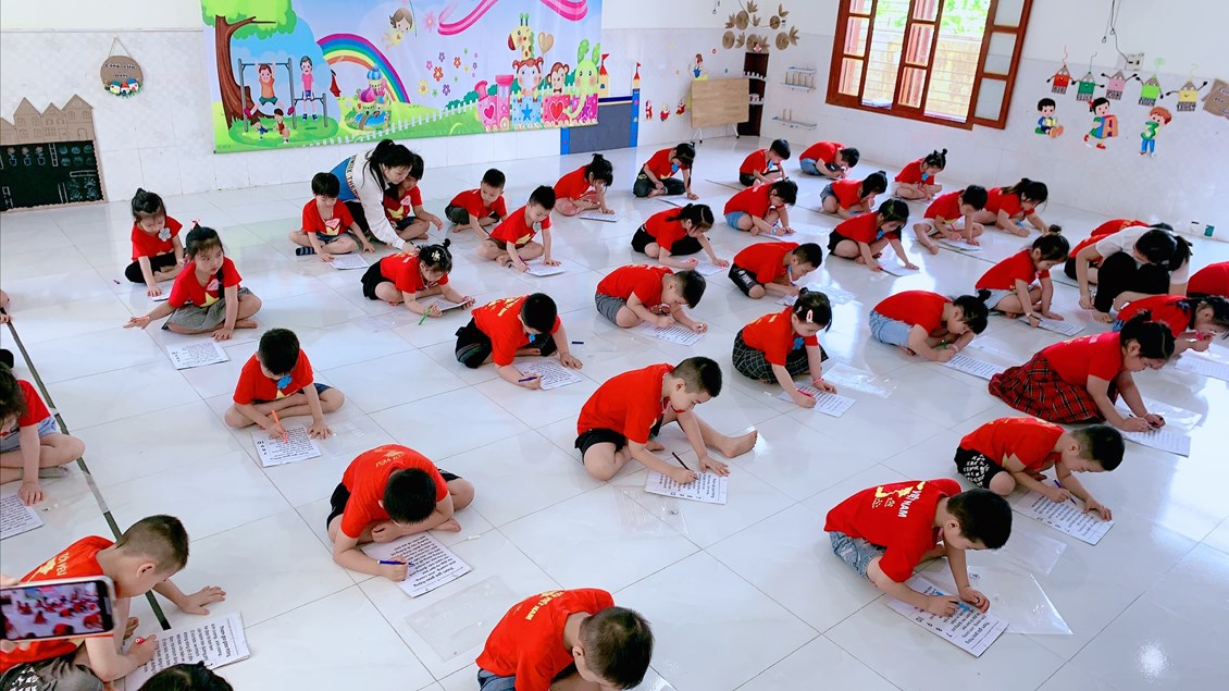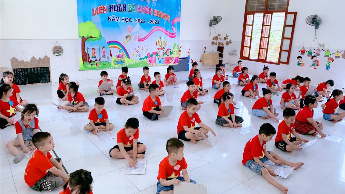Liên hoan bé khỏe ngoan - Bé vui giao thông diễn ra trong không khí vui tươi, phấn khởi với sự tham gia của 100% các bé 5 tuổi.