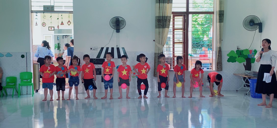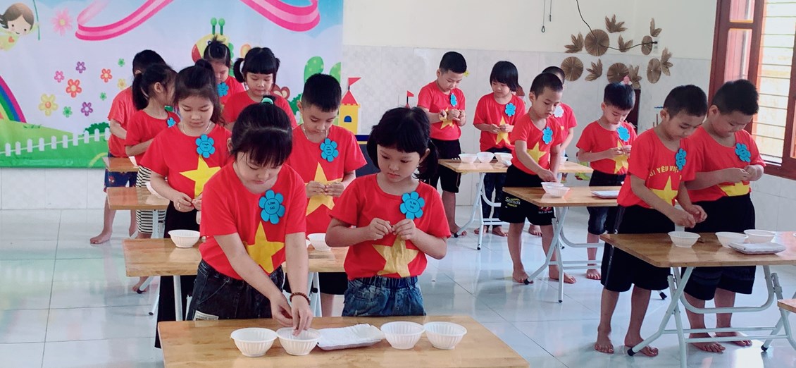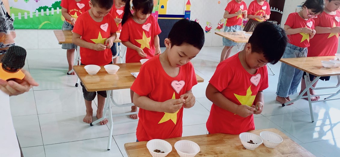Trong buổi liên hoan các bé được rèn luyện đôi tay khéo léo, sự nhanh nhẹn khi tham gia với trò chơi bóc lạc