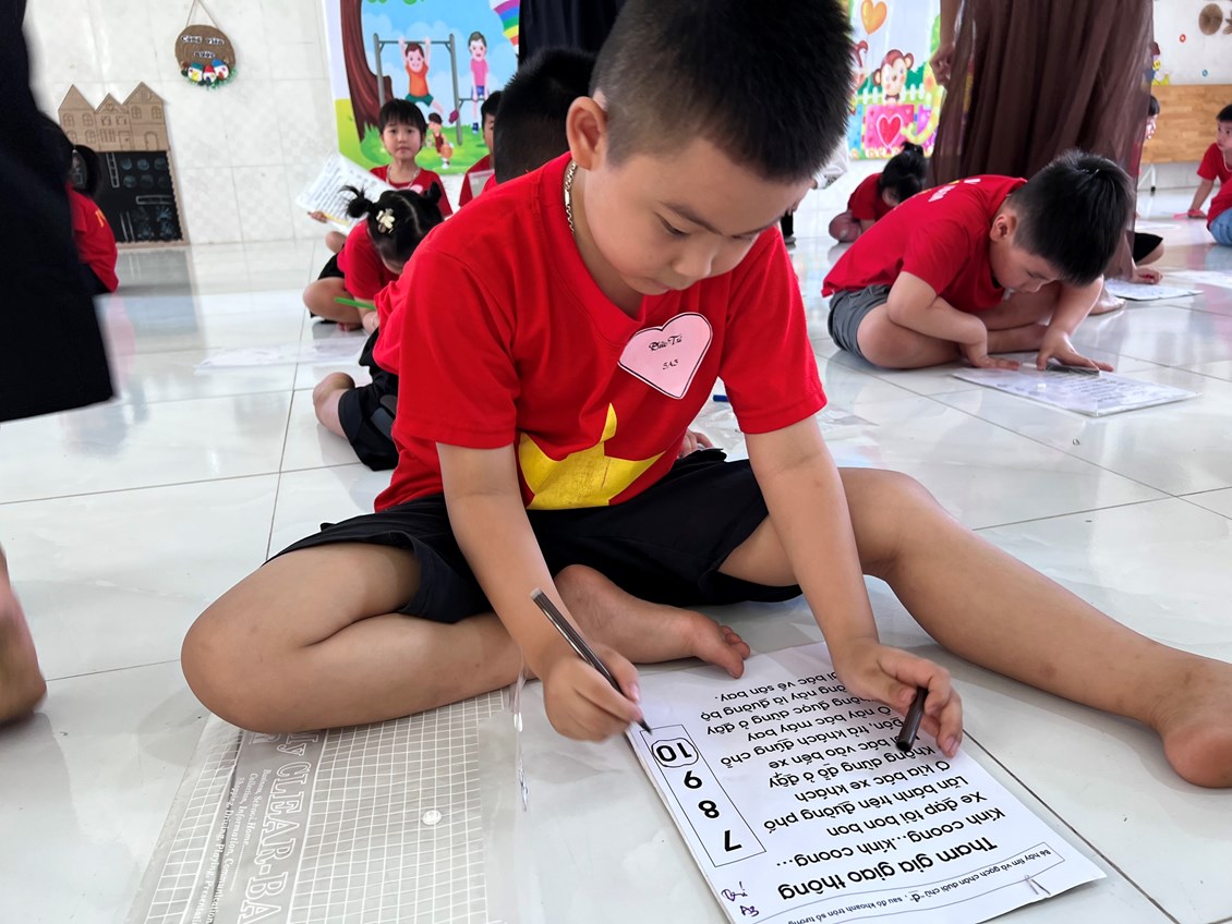 Tiếp theo các bé thi đua trong trò chơi Chuyển bóng; ôn lại kiên thức về an toàn giao thông với phần thi "Bé vui giao thông" và bé được ôn luyện lại chữ cái, chữ số thông qua trò chơi "Tìm chữ cái trong từ và khoanh tròn vào số tương ứng"