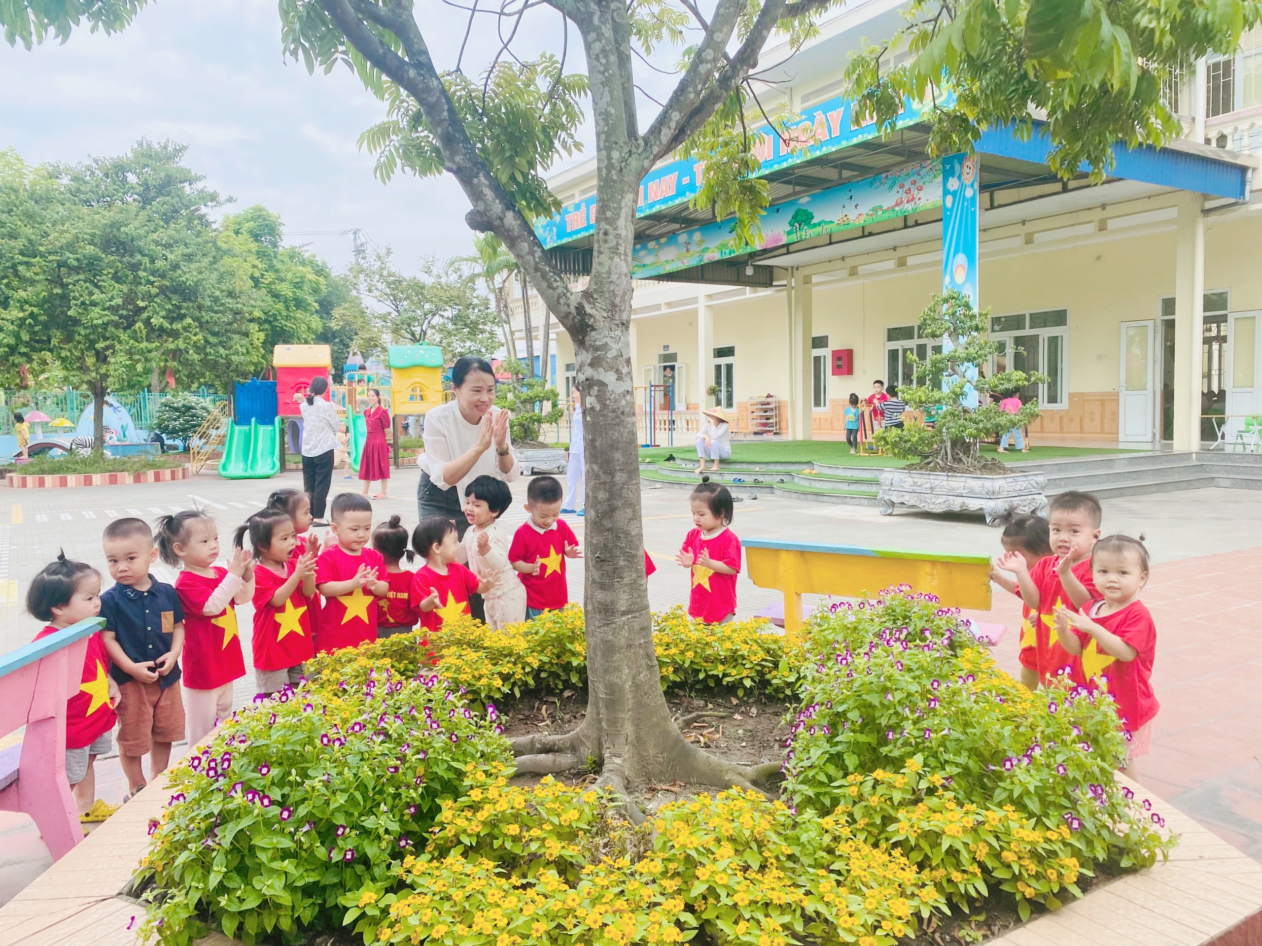 Dưới đây là một số hình ảnh đáng yêu của các bé nhà trẻ 2 trong giờ hoạt động ngoài trời.