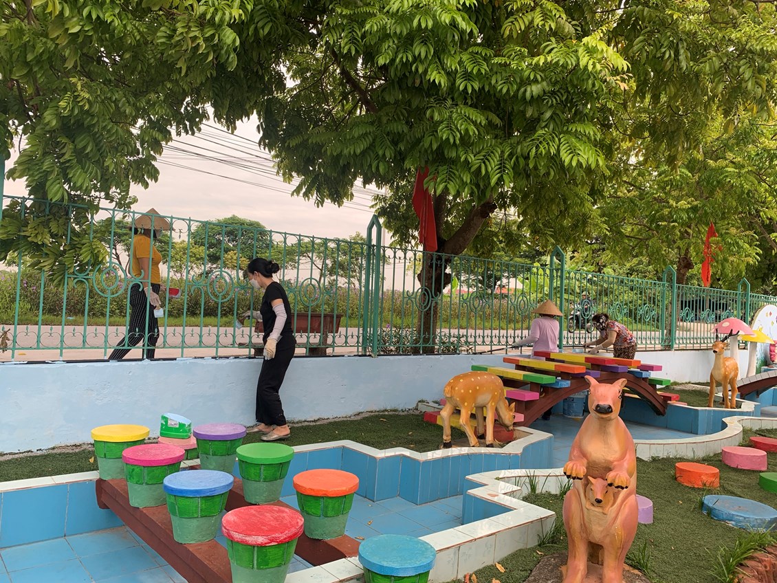 Trước thềm năm học mới, Ban giám hiệu trường mầm non Tân Tiến đã chỉ đạo toàn thể cán bộ giáo viên, nhân viên trong nhà trường phối hợp với phụ huynh xây dựng môi trường giáo dục xanh, sạch, đẹp, thân thiện và đảm bảo an toàn cho trẻ. Sau đây là hình ảnh cán bộ, giáo viên, nhân viên cùng phụ huynh của nhà trường tổng dọn vệ sinh, trang trí các khu vực trong và ngoài nhà trường để chuẩn bị chào đón năm học 2023 – 2024: