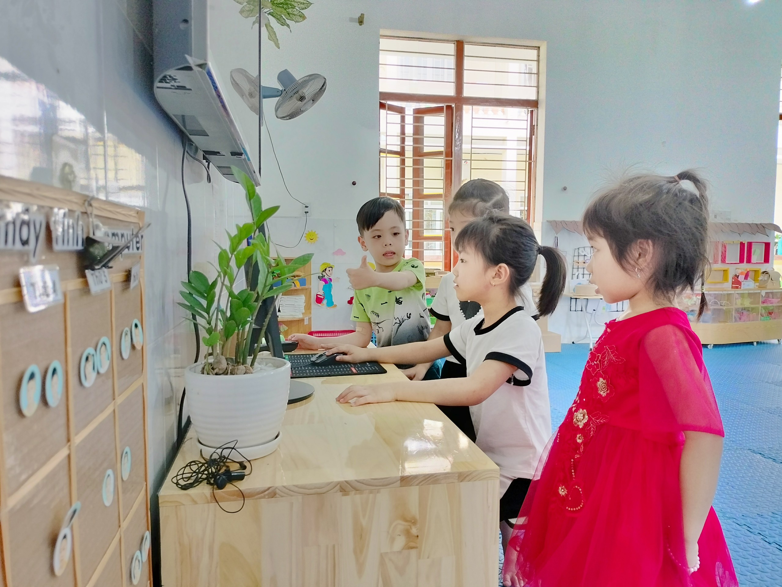 Với hoạt động chuyển đổi số, các cô đã linh hoạt tổ chứccho các bé tham gia các trò chơi nhằm làm quen với máy tính: Thao tác di chuột, kích chuột, sử dụng chuột .... Và đặc biệt các bé được phát triển tư duy, khả năng sáng tạo, phán đoán khi tham gia các hoạt động trên máy vi tính, điện thoại thông minh
